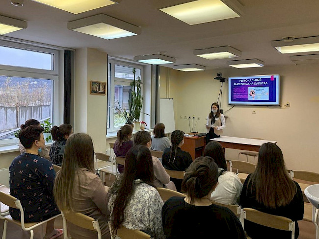 22 октября 2025 года сотрудники отделения ГОБУ «МФЦ МО» по Ленинскому административному округу г. Мурманска провели для пациентов Мурманского областного перинатального центра выездной информационный семинар, посвященный государственным и муниципальным услугам, которые могут получить молодые семьи в рамках жизненной ситуации «Рождение ребенка».